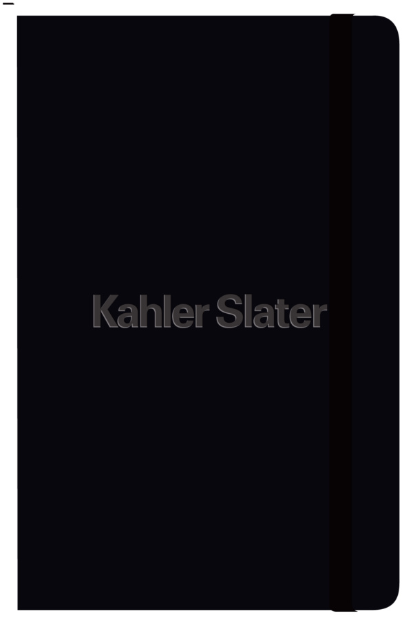 Bound hard cover with rounded corners, bookmark and elastic strap closure